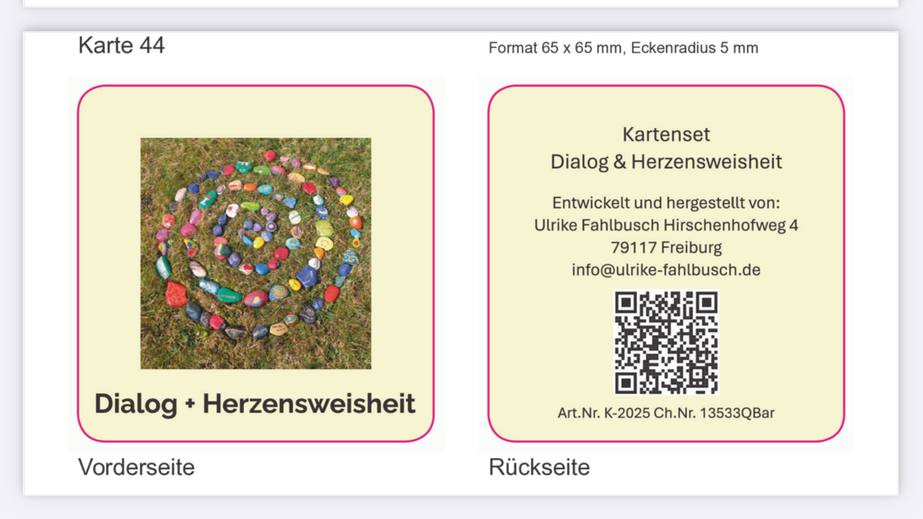 Und so schaue ich auf das von mir entwickelte Kartenset "Dialog und Herzensweisheit" und frage mich, ob und wem es wohl unterstützend dienlich sein kann. Um meinen eigenen Fragen näher zu kommen, habe ich mir - einer Eingebung folgend - eine Herausforderung gesetzt: